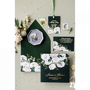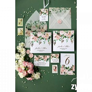 Ponadto na nowoczesnych zaproszeniach nadrukowuje się eleganckie i oryginalne designy. Są to głównie motywy kwiatowe, ale zdecydowanie nie takie, które znasz ze standardowych projektów. Charakteryzują się one bogactwem detali. Są jednak na tyle dobrze wyważone, że nie przytłaczają, dlatego świetnie sprawdzą się nawet na minimalistycznych przyjęciach ślubnych.