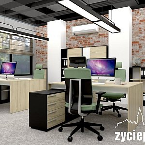 Coraz więcej biur decyduje się również na hybrydowy lub całkowicie zdalny system pracy. Właśnie dlatego warto zastanowić się, jak powinno wyglądać odpowiednio wyposażone domowe biuro. Tutaj również najważniejsza jest przestrzeń - może to być osobne pomieszczenie lub po prostu wydzielona przestrzeń, np. w salonie. Kluczowym elementem, jak w każdej przestrzeni pracy jest oczywiście biurko i krzesło. Do home office bardzo dobrze sprawdzą się dwa rodzaje biurek - klasyczne, proste biurko, do którego można dodać niewielki kontenerek oraz biurko narożne z wbudowaną komodą biurową na dokumenty. Oba rozwiązania mają swoje zalety i warto je dostosować do dostępnej przestrzeni oraz indywidualnych potrzeb użytkownika. Klasyczne biurko z kontenerkiem sprawdzi się w mniejszych pomieszczeniach, gdzie liczy się oszczędność miejsca, a jednocześnie potrzebny jest dodatkowy schowek na akcesoria biurowe. Z kolei biurko narożne z wbudowaną komodą pozwala na lepsze zagospodarowanie narożników pokoju i oferuje więcej miejsca do przechowywania, co jest szczególnie przydatne przy większej liczbie dokumentów czy sprzętu. Nie mniej istotnym elementem jest ergonomiczne krzesło, które zapewni wygodę podczas długotrwałej pracy oraz pomoże w utrzymaniu prawidłowej postawy. Warto zwrócić uwagę na modele z regulacją wysokości, oparcia oraz podłokietników, aby idealnie dopasować je do użytkownika.
