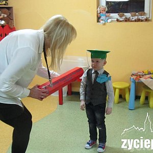 Po występach przyszła pora na cześć oficjalną. Pani dyrektor, Barbara Olszewska dużą czerwoną kredką pasowała 3-latki na pełnoprawne przedszkolaki.