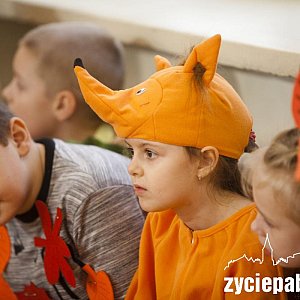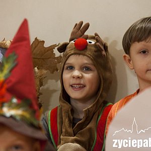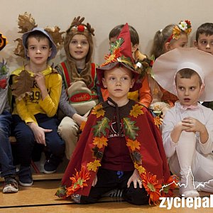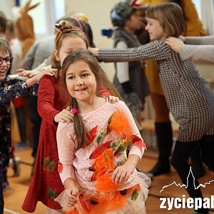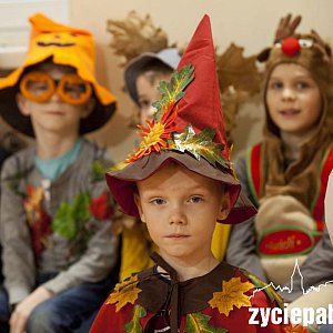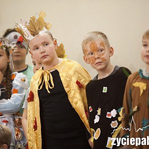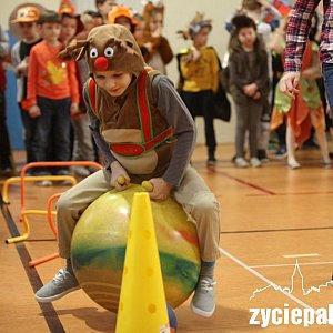 W piątek akcję zbierania kasztanów podsumowano w szkole wielkim balem. Dzieci, poprzebierane w rozmaite związane z jesienią (ale nie tylko) stroje, bawiły się w sali gimnastycznej. Zabawy i konkurencje sportowe przygotowali dla nich harcerze z 79. PDH „Wilki”, drużyny działającej w SP 14 od wielu lat.
