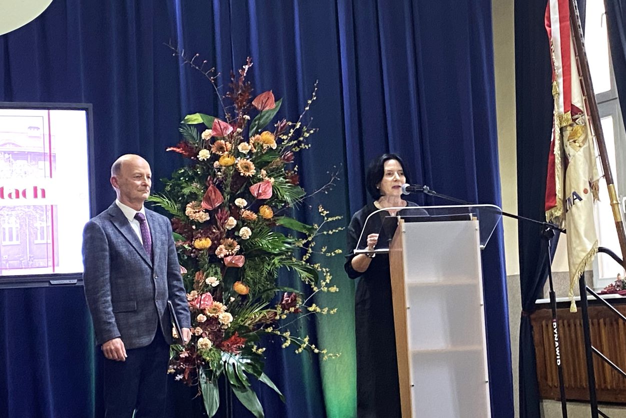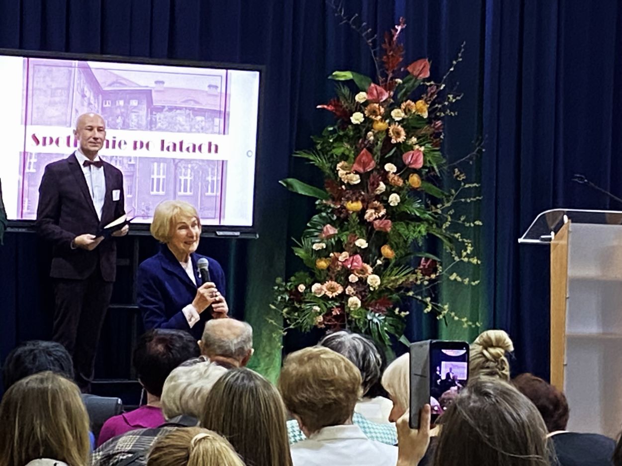 W imieniu swojej mamy Wandy Lelonek - byłej dyrektorki liceum- głos zabrała Małgorzata Lelonek, również absolwentka LO, a obecnie prof. hab. dr nauk medycznych. Krzysztof Habura po raz drugi i z większą wprawą udekorował sztandar odznaką Primus in Agendo.