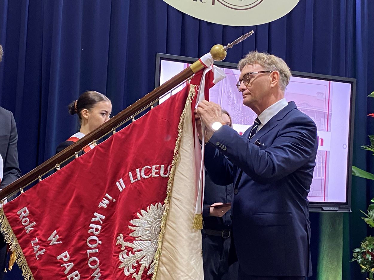W czwartek odbyła się oficjalna uroczystość z udziałem władz województwa, powiatu i miasta. Głównym punktem było udekorowanie sztandaru szkoły medalem Primus in Agendo. Zrobił to poseł Krzysztof Habura (absolwent II LO matura 1974).