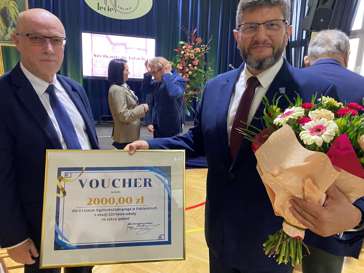 Prezydent miasta Grzegorz Mackiewicz (również absolwent II LO) wręczył czek na 2.000 zł na zakup gablot do prezentacji trofeów szkolnych. Szkoła i dyrekcja dostała mnóstwo dobrych życzeń i gorących słów uznania od dyrektorów innych pabianickich placówek.