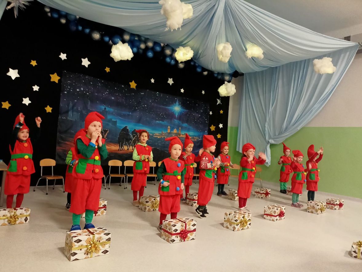 Do tego wydarzenia mali artyści przygotowywali się przez kilka tygodni. Z dużym zaangażowaniem ćwiczyli piosenki i tańce, uczyli się kolęd, a także własnoręcznie dekorowali wcześniej upieczone pierniki, ozdabiając je lukrem i kolorowymi posypkami. Rodzice z dumą obserwowali pierwsze sceniczne występy swoich dzieci, nie kryjąc wzruszenia.