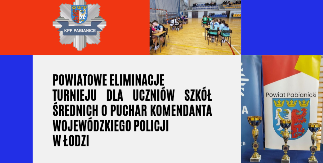 Pabianiccy policjanci zapraszają uczniów szkół ponadpodstawowych do udziału w powiatowych eliminacjach Turnieju o Puchar Komendanta Wojewódzkiego Policji w Łodzi. Zmagania odbędą się 6 marca 2026 roku o godzinie 10.00 w Hali Powiatowej w Pabianicach przy ul. Świętego Jana 30/36. Na zgłoszenia organizatorzy czekają do 23 lutego.
