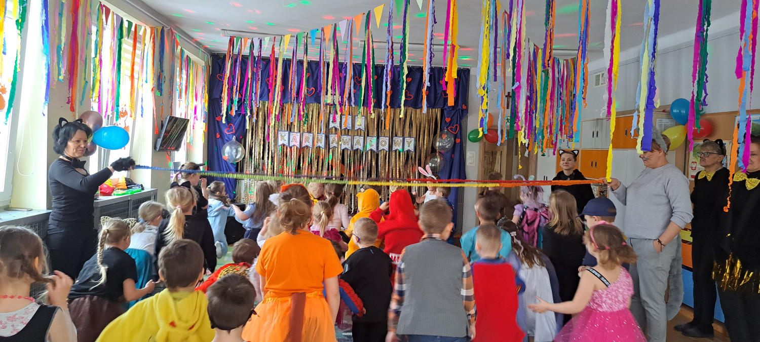 Wyjątkowym elementem tegorocznej zabawy był Dzień Kota. Z tej okazji cała kadra pedagogiczna wcieliła się w urocze koty. Kocie uszka, wąsy i ogonki wywoływały mnóstwo radości, a dzieci z entuzjazmem bawiły się i tańczyły razem ze swoimi „kocimi” paniami.