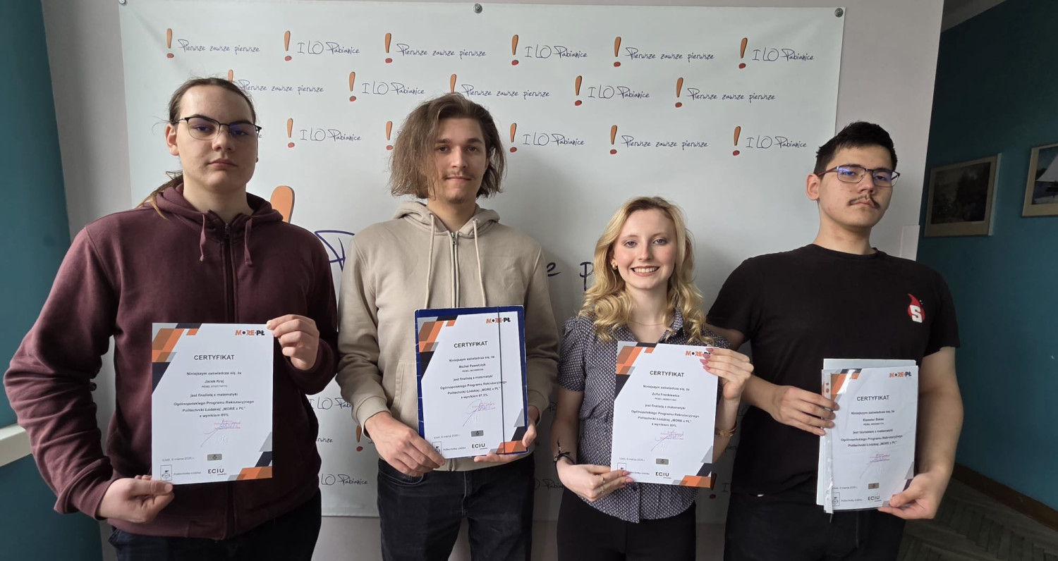4 marca 2026 r. odbyła się uroczysta Gala Ogólnopolskiego Programu Rekrutacyjnego Politechniki Łódzkiej „MORE z PŁ”. W gronie 54 laureatów (49 laureatów z matematyki i 5 z chemii), którzy osiągnęli wynik powyżej 90% znalazł się uczeń naszej szkoły Ksawier Bataa z klasy 3f. Ma indeks Politechniki Łódzkiej, ale wcześniej musi zdać maturę.