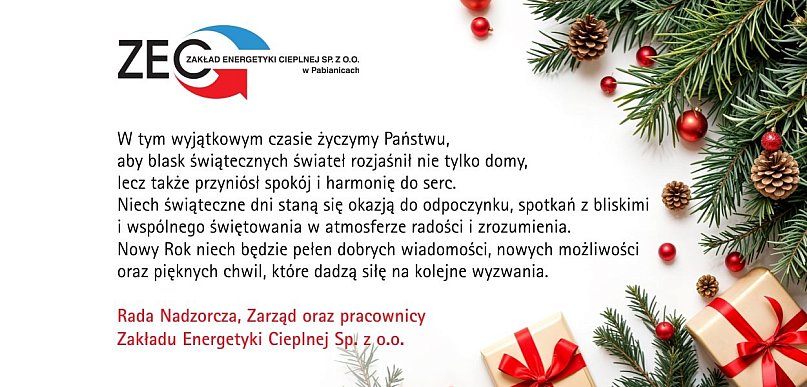 Życzenia świąteczne od Zakładu Energetyki Cieplnej w Pabianicach