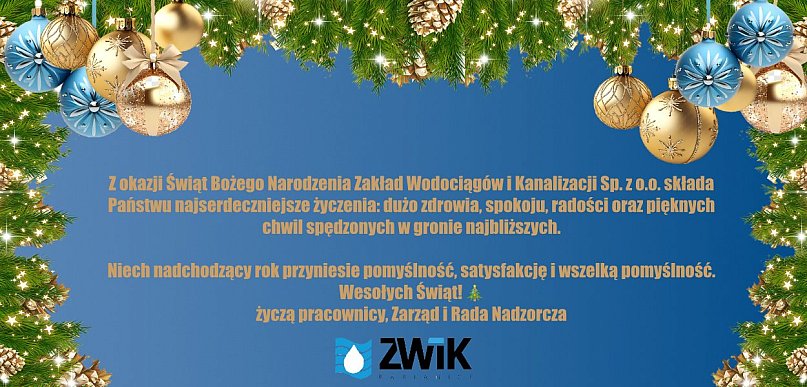 Życzenia świąteczne od Zakładu Wodociągów i Kanalizacji w Pabianicach