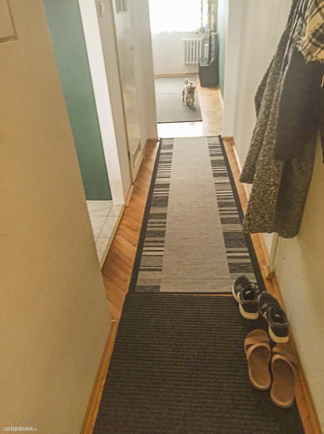 W mieszkaniu: karnisze,firanki, zaslony, dywany, gorne oswietlenie LED, 1 komoda,