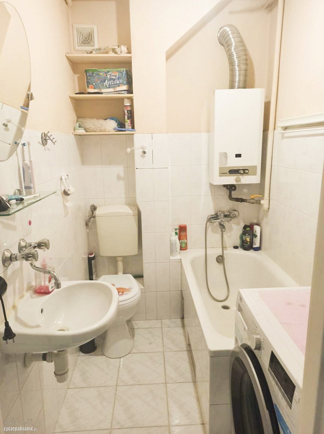 Czysta ladna lazienka: nowoczesna pralnica automat. do 6Kg, wanna.