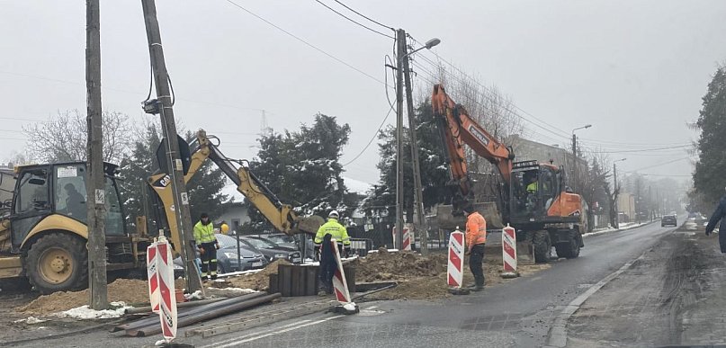 Na skrzyżowaniu ulic Warszawskiej i Myśliwskiej trwają roboty ziemne. ZWiK kładzie kanalizację sanitarna. Proponuje się objazdy dla jadących Myśliwską w stronę Warszawskiej